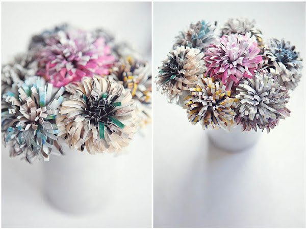 ¿Y por qué no optar, como alternativa al plástico, al uso de flores secas? ¿o dar rienda suelta a tú imaginación elaborándolas con tus propias manos con papel?... Hoy, nos inspiramos un sencillo tutorial con resultados de diez. El paso a paso, en la página ROCK N ROLL BRIDE...