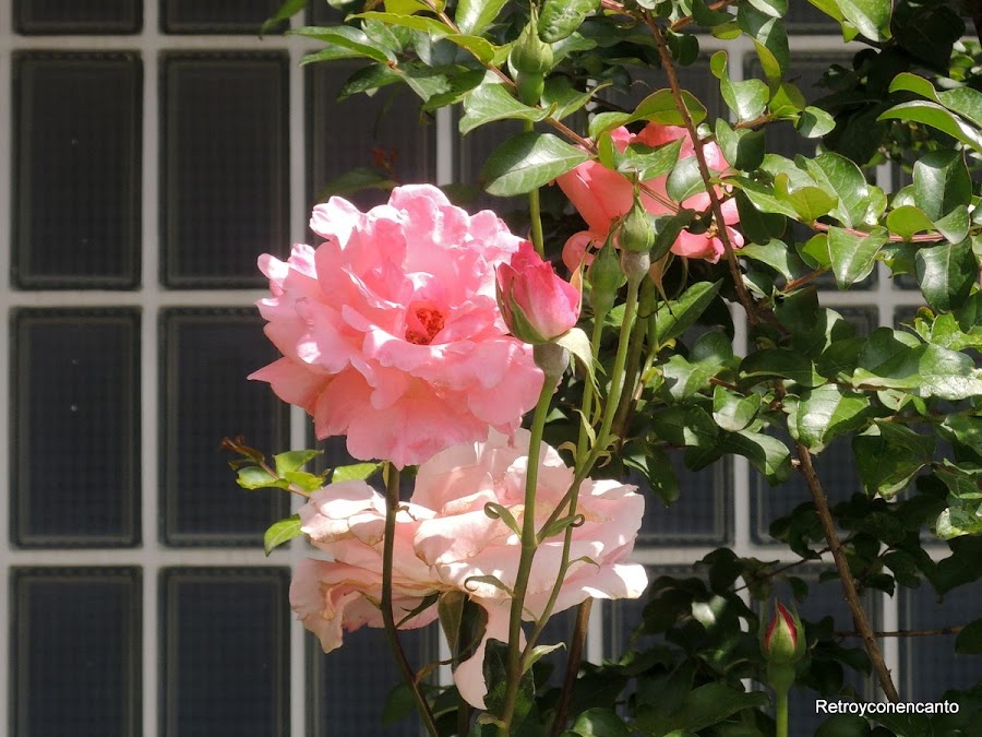 Queríamos comentaros que fuera del taller hay unos rosales maravillosos... Abrimos la puerta y nos damos de cara con las flores... Y son una tentación terrible, pues en teoría no pueden cogerse... En teoría... porque hemos desarrollado una técnica mediante la cual una vigila, y la otra, tijera en mano, se acerca a hurtadillas, corta una rosa, y corre "pa dentro que se las pela". El otro día nos pillaron, por cierto... Pero aguantamos bien el tipo con el vecino, sonriendo, disimulando, jajajaja, jejejeje, qué loco está el tiempo... y esas cosas...