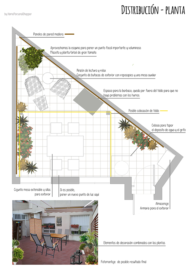 Hoy os enseño uno de los últimos asesoramientos que he realizado. La dueña me escribió porque no sabía muy bien que hacer con él, tenía dudas sobre que tipo de protección solar poner y no sabía como podía tapar el deposito de agua que tenía nada más entrar.