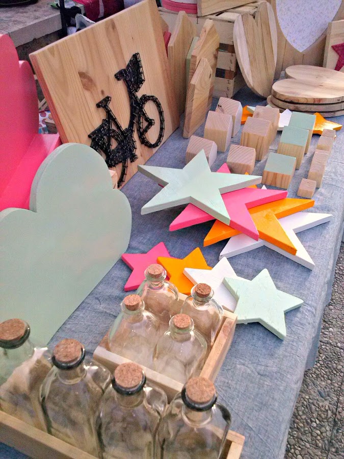 La verdad es que no tenia muy claro si acudir al mercadillo o no y me animé con el tiempo justo. Estuve la semana y media previa al mercadillo haciendo todas las cosas que iba a llevar. Vamos en esos días me harté de lijar, pintar y barnizar. De hecho estuve un montón de días mañana, tarde y noche para llegar a tiempo y menos mal que cuento con la gran ayuda de mi mujer (estuvo pintando y barnizando como una loca) porque sino creo que no me habría dado tiempo a terminar muchas cosas.