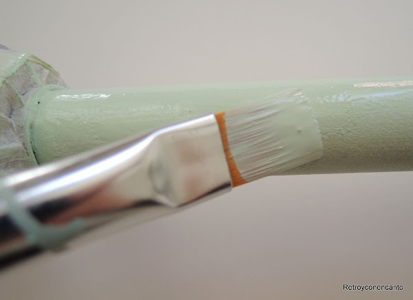 El color del pie era muy oscuro, así que le dimos dos manos de imprimación. Además la pintura con la que trabajamos después no era a la tiza, sino acrílica, y le costaba más cubrir.