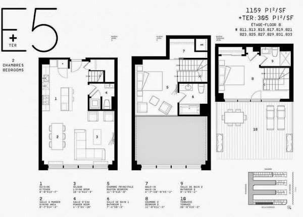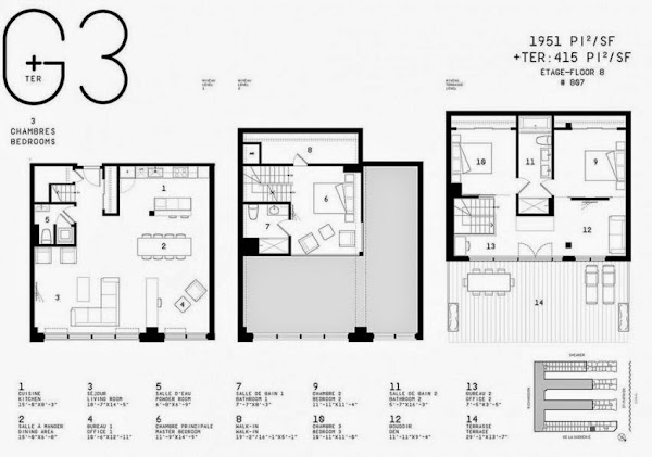 Al entrar en los áticos, los visitantes son cautivados por la extensa fenestración que mejora la impresión de ligereza que se levanta a la entreplanta. Una sala de estar inspiradora en el tercer nivel de algunos áticos se abre a una terraza privada que mide aproximadamente 300 metros cuadrados y ofrece una vista excepcional de la ciudad. "Hemos trabajado para crear una experiencia de confort urbano que rindió homenaje al pasado y el presente del barrio", dice Aurèle Cardinal, Arquitecto en Lemay+CHA y Co-Fundador de Cardinal Hardy, la empresa que creó el Tour des Canadiens, los Lofts Redpath y el complejo Bassins du Havre.
