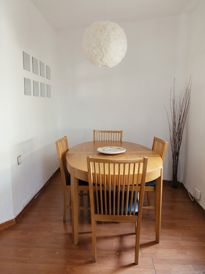 Ahora vamos hablar de la decoración del comedor, decidí añadir a una de las paredes, unos espejos auto adeshivos de Casa Shops, para vestirlas un poco, sin recargarlas y dar amplitud y para una de las esquinas, para aportar un poco de vida, el jarron con baras de madera que tengo en el pasillo, pero mi intencion es añadir una planta con un canasto de mimbre para no romper la armonía que hay entre el comedor y el salón. Para a la mesa, solo un pequeño plato decorativo, poco llamativo pero precioso con los cristalitos, siempre jugando con colores claros, asi a la estancia aportamos pequeños detalles,sin robar protagonismo a la lampara.