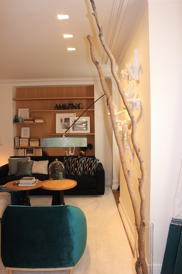 El azul, en combinación con colores oscuros como el marrón y el negro estuvieron presentes también en otros "rincones con estilo", como el presentado por MIGUEL MUÑOZ, Espacio Schneider o Marisa Gallo