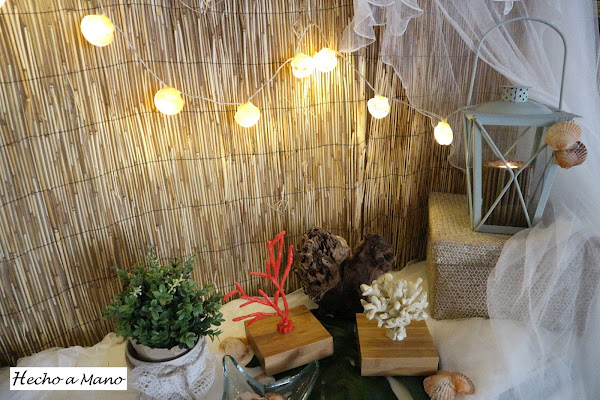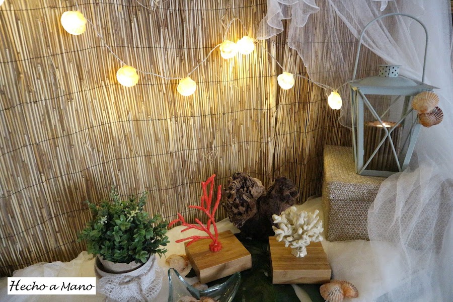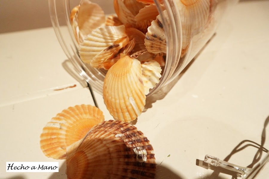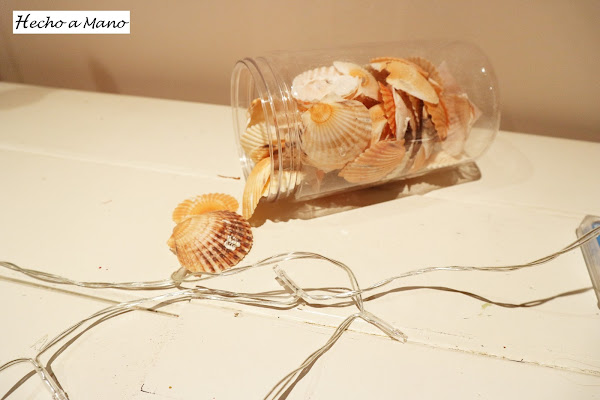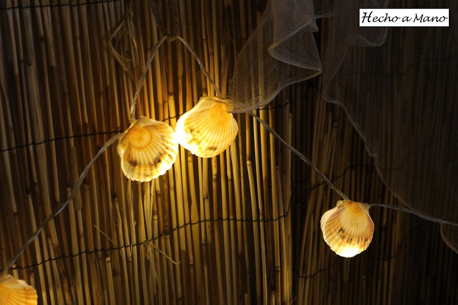 A la vez, decidí fabricarme mi propia guirnalda de luces. ¿como?, pues con conchas.