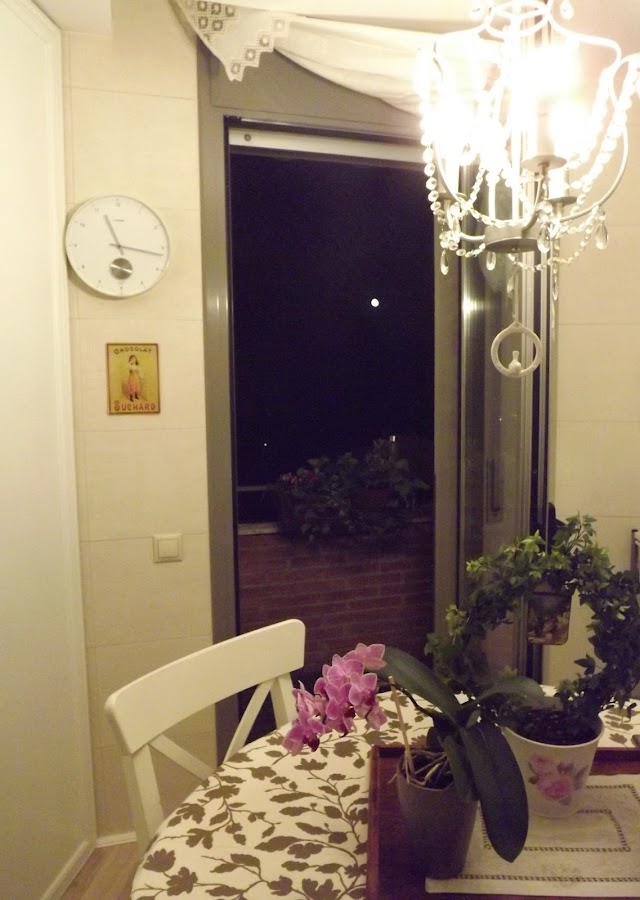Y volvemos de nuevo al salón. Por el gran ventanal a lo lejos nos saluda la luna...