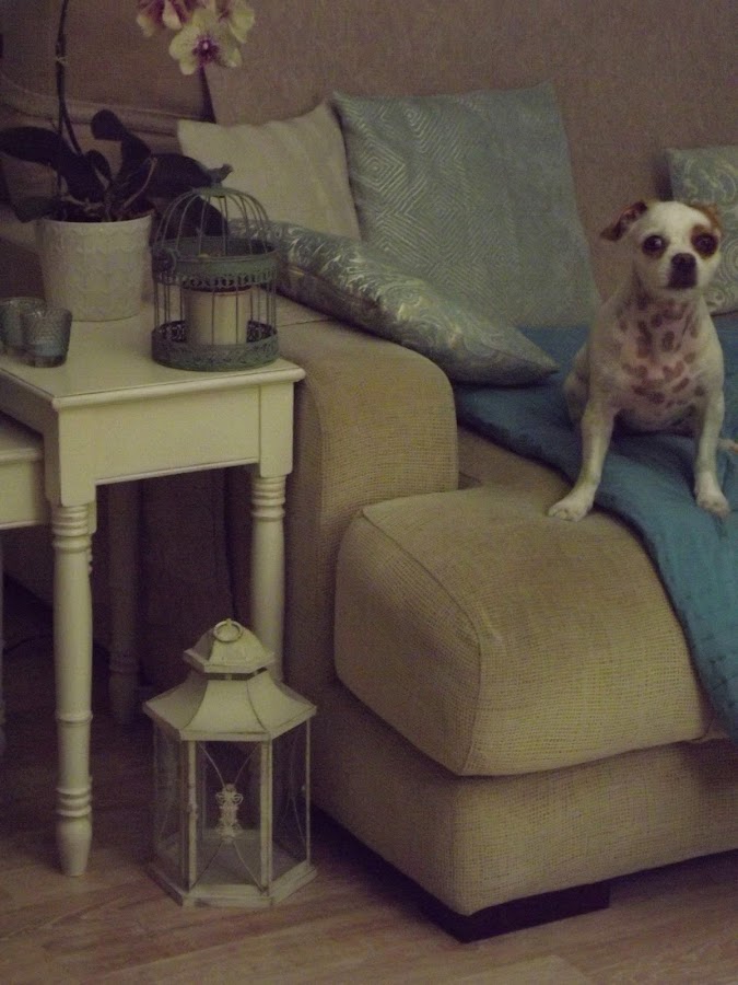 Junto al sofá en el que ya se ha instalado mi Yaiza...