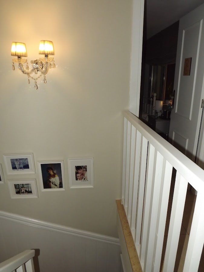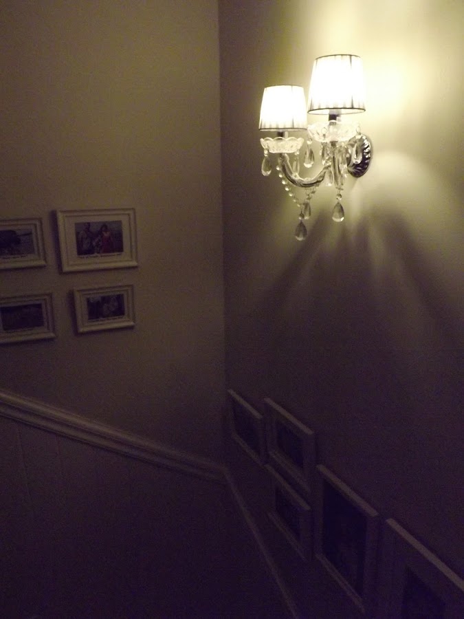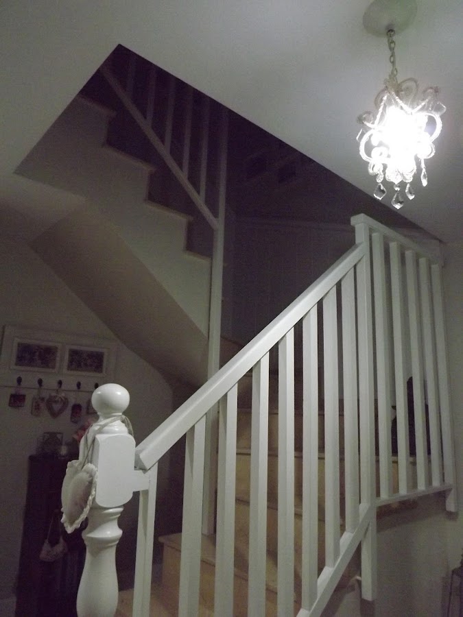 El final de la escalera iluminada con la la lámpara en forma de piña y repleta de lágrimas...