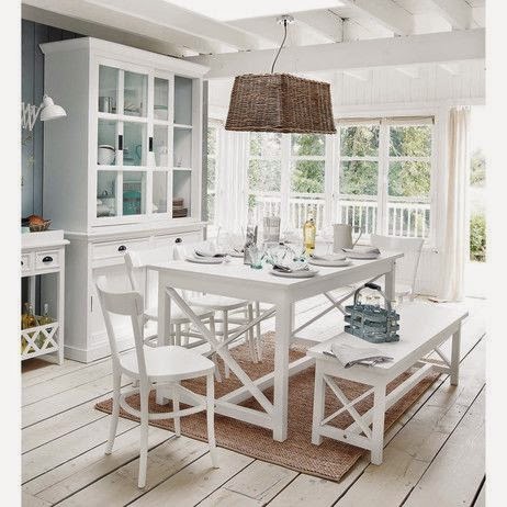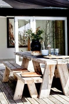 Hola! hace poco publiqué aquí sobre lo bonitas que son las mesas de madera estilo rústico para el comedor e ideas para decorar este espacio. Desde que empecé a buscar en internet sobre este tema, vi varias fotos donde colocan un banco en uno de los laterales de la mesa, lo cual me pareció una idea genial! creo que le da un toque diferente al comedor, y si le añadimos cojines o alguna mantita tendremos un espacio súper acogedor, y si, además combinamos con sillas o taburetes de tipo industrial como las Tolix, o la tipo Eames nuestro comedor será lo más! También quedan preciosas las sillas transparentes estilos Louis Ghost, o con sillas de madera pintadas... en fin! les dejo con estas imágenes, espero que les inspiren tanto como a mi :)