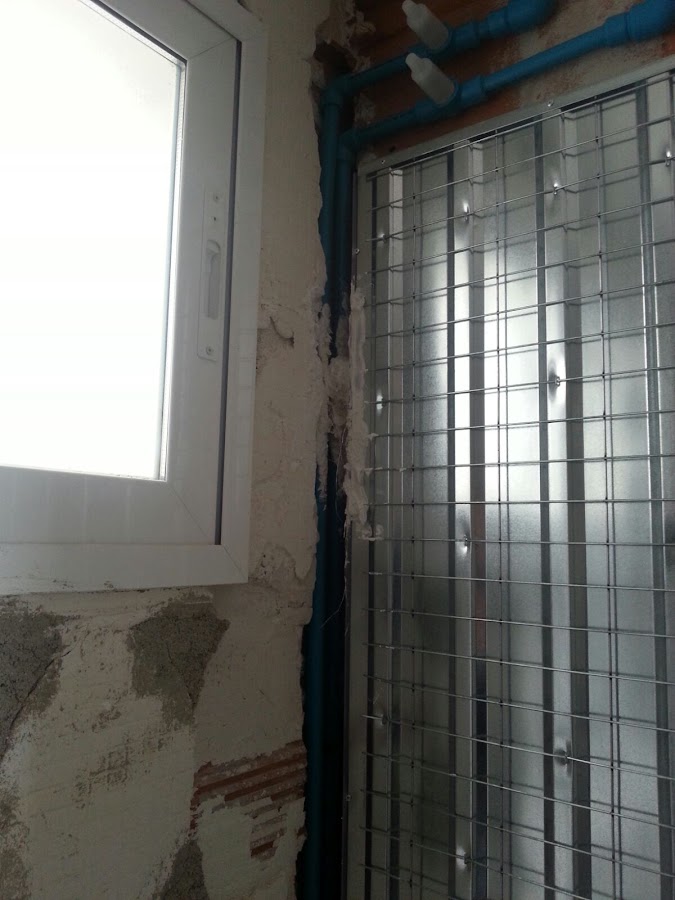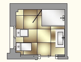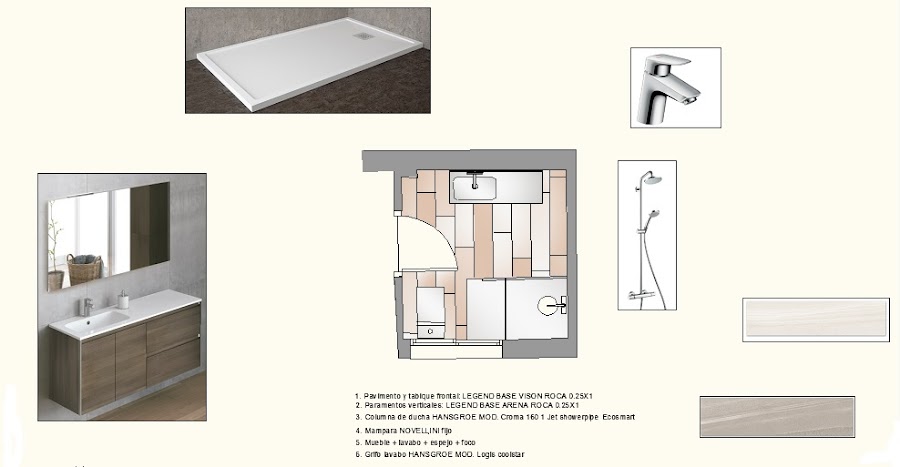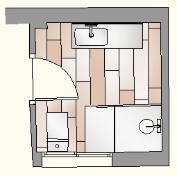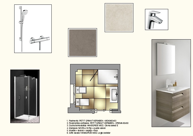 Plano de nueva distribución (prescindiremos del bidet y bañera instalando un pie de ducha y dedicando gran parte del baño a lavabo y almacenaje)