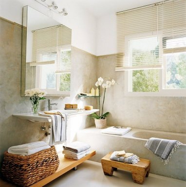 Es una cuestión de mezcla de texturas, de espacios amplios sin recargar, con una base fría de piedra o cemento pulido que aporta pureza de lineas, con el toque orgánico de la madera en pinceladas muy pequeñas, lo justo para dar ese aire rústico y acogedor. Son baños donde el continente es más importante que el contenido, donde éste sólo aporta ese detalle de diferenciación con una grifería moderna ...