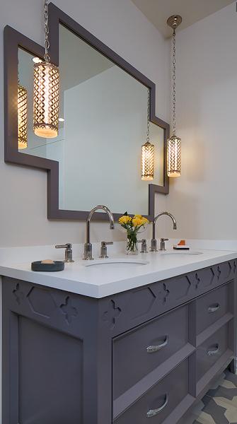 Curiosa forma la de espejo de la foto anterior (5); le da dinamismo y enmarca perfectamente las lámparas. El mosaico que de adivina en el suelo, tiene que ser espectacular.