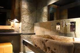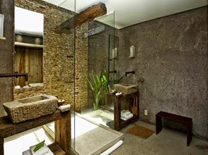 Son baños donde el continente es más importante que el contenido, donde éste sólo aporta ese detalle de diferenciación con una grifería moderna, unos toalleros hechos con unas simples ramas, un tronco a modo de asiento o unas pilas de piedra como lavabos.