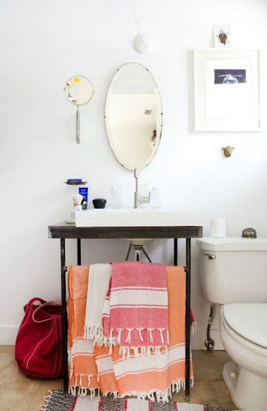 El verano es un buen momento para dar un aire nuevo al baño a través de complementos, espejos, textiles, iluminación… o si es necesario, hacer una reforma integral. Yo me encuentro ahora en esta tarea, no en reformar, pero sí en darle un poco de alma a los baños. Así que ya os enseñaré el resultado más adelante. A veces, un mueble y un espejo original como en la primera foto, complementos naturale ...
