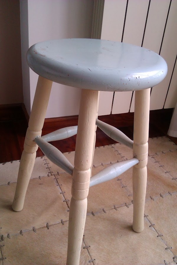 Los tonos escogidos fueron en este caso dos restos de pinturas sobrantes de otros trabajos, que con gusto aprovechamos en esta ocasión; un pelín de desgaste .... y listo....
