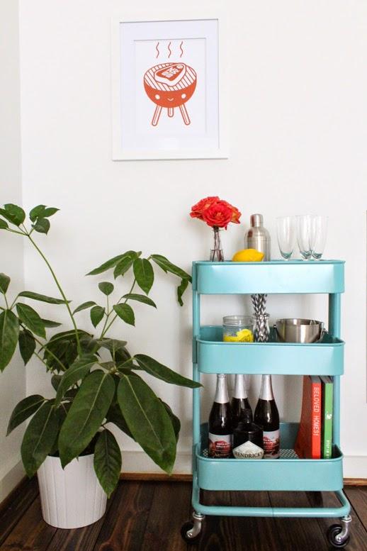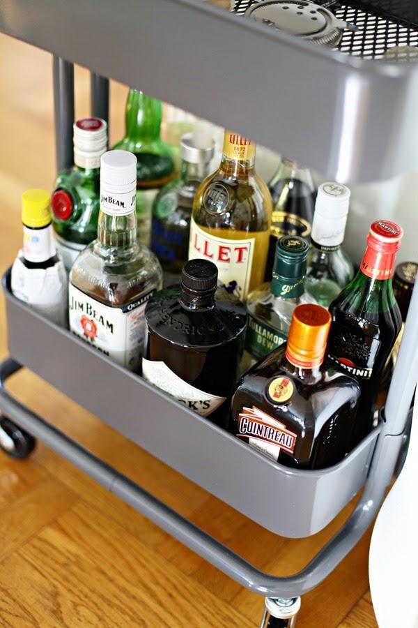 Como habréis adivinado ya por la foto anterior, la base es el sencillo pero versatilísimo carrito Råskog de Ikea, que por menos de 50 â?¬ es una soporte excelente para empezar a trabajar. Además, para que vuestro minibar sea al mismo tiempo completo y estiloso, no os pueden faltar los siguientes elementos: