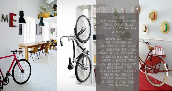 Hace unas semanas recibimos un correo de Rocío Ramos, una joven diseñadora de interiores llena de energía y buenas ideas, proponiéndonos una colaboración en el blog. La verdad, es que nosotras! ya habíamos pensado en hacer algún tipo de colaboración y poner un banner en el lateral animando a los que nos leéis a escribirnos y proponernos cosas diferentes, así que nos pareció una idea genial. Le dimos luz verde a que propusiera tema y enfoque y, la verdad, no nos puede gustar más su elección, porque la incorporación de las bicis a nuestra vida (y por lo tanto, a nuestras casas!) es un hecho. Así que, si hay bici, tiene que haber lugar para ella, y no es precisamente un elemento "fácil de esconder"...