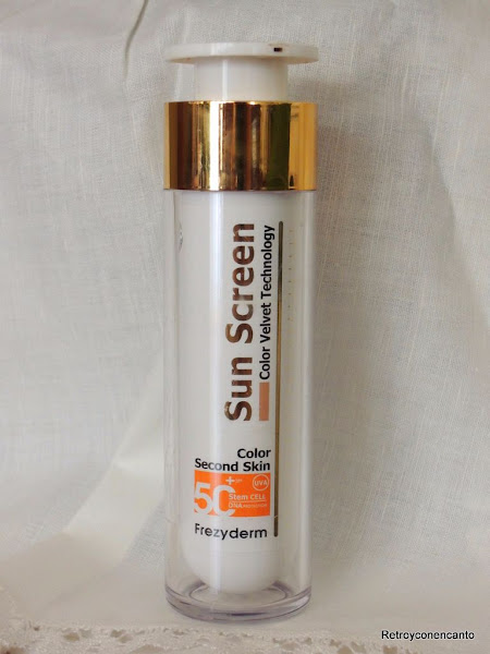 Sin más preámbulos, hoy queremos compartir un producto maravilloso que ambas usamos desde hace tiempo... Vaya por delante que éste no es ningún post patrocinado, hablamos de él porque a nosotras nos entusiasma. Se trata de un protector solar de factor 50 con color, de la marca Frezyderm (de origen griego), que un día probamos por casualidad en una parafarmacia (también se vende en farmacias y por internet). Libre completamente de grasas, su textura aterciopelada sorprende desde el primer momento, y enamora del todo cuando se funde con la piel, dejándola satinada, ligeramente maquillada y, por supuesto, protegida.