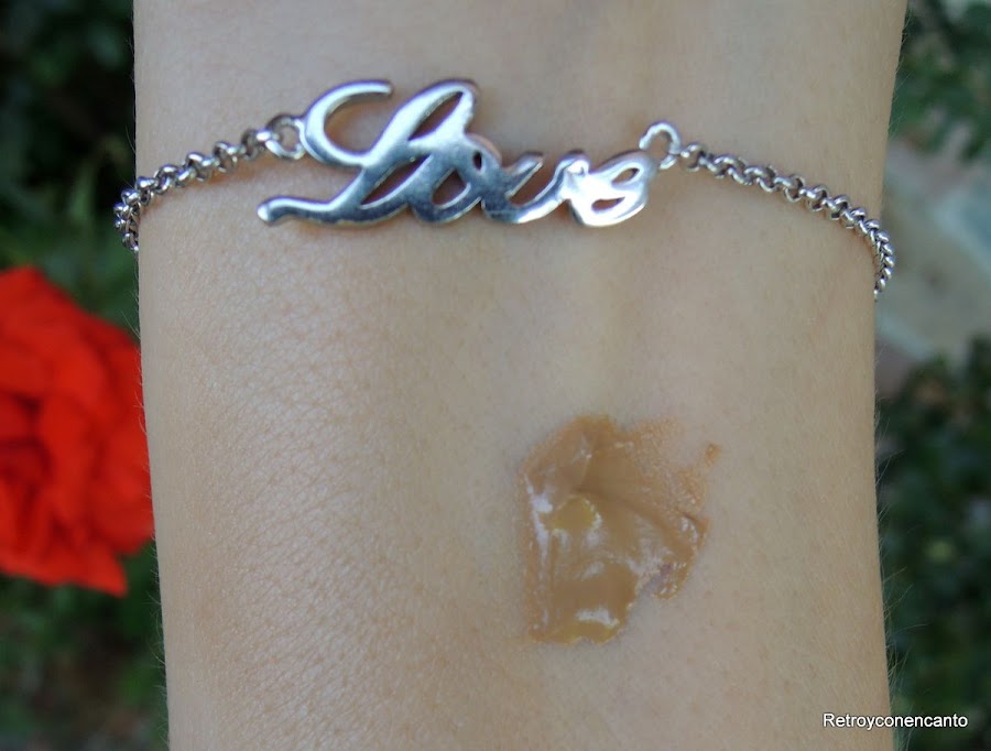 En el lado interno de la muñeca os mostramos el producto; a la izquierda de la imagen lo hemos extendido y, aun siendo más oscuro que nuestra piel, mágicamente el color se iguala con cada dermis.