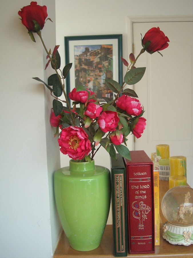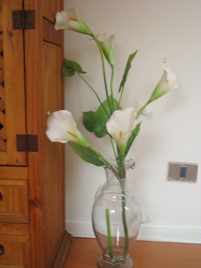 Los otros floreros de la Sala poseen flores artificiales especialmente escogidas y me encantan...
