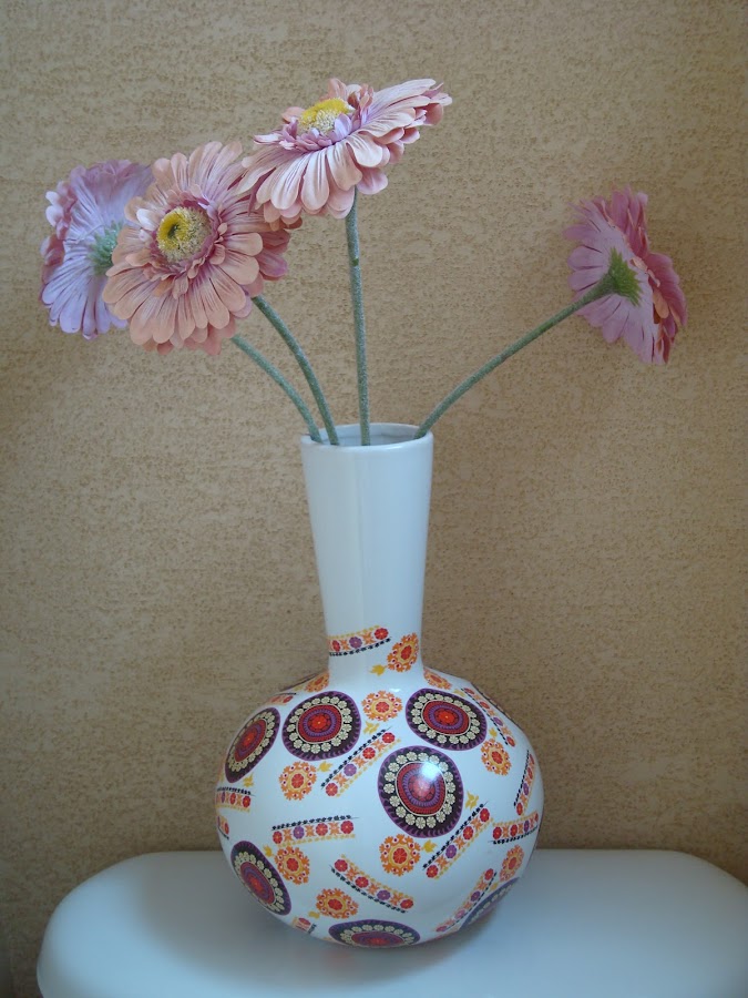 Si sé que la tradición dice que hay que colgarlos en la puerta de nuestro hogar... pero se caen y se van desmoronando de a poco. En cambio, en este bello florero se han mantenido inmaculados.