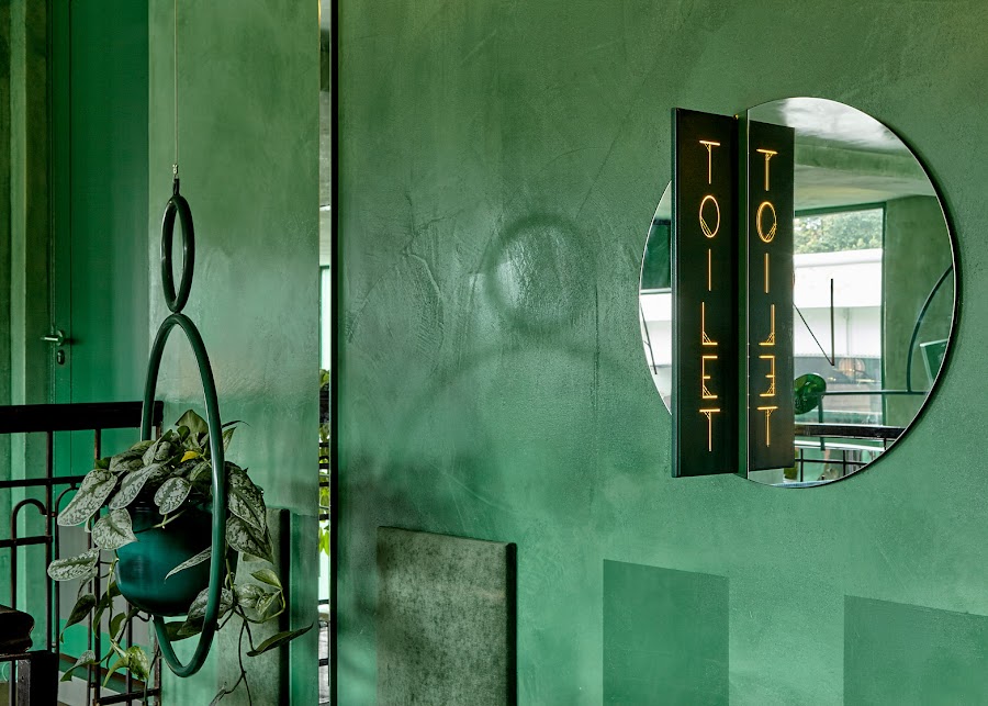 El estudio alemán Modijefsky, se ha encargado de la imagen global y diseño de interior de este negocio, inspirándose en la jungla, llenando todo de superficies en diferentes tonos de verde, azules, y colores presentes en la naturaleza, además, por supuesto, hay muchas plantas con las que se ha querido jugar con luces y sombras durante el día.