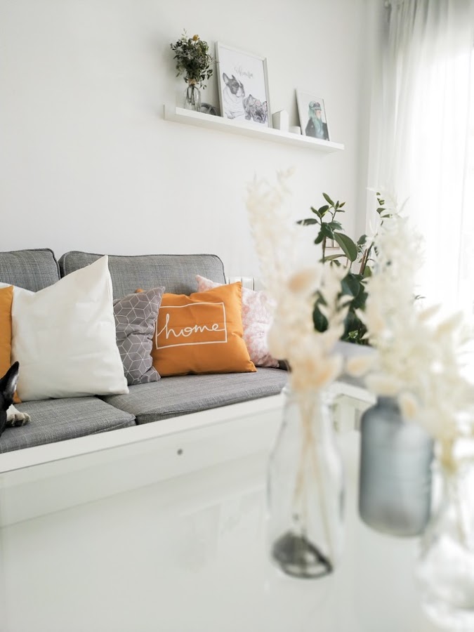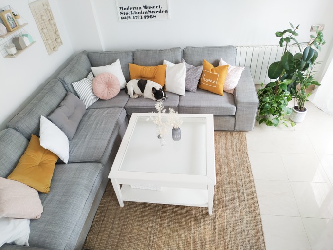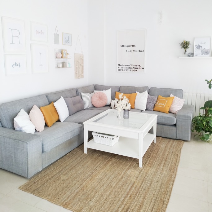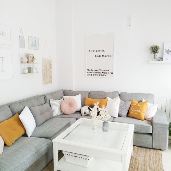 ¡La primavera ha llegado! Bueno por aquí casi que el verano y de pronto las ganas de salir, dar color y llenar todo de plantas han crecido de forma exponencial. Prueba de ello, es el sofá que hoy te muestro y que he decorado en tonos mostaza, rosas y grises con todos los cojines de la shop.