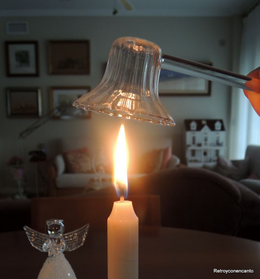 Antes de irnos, teníamos que probar este apagavelas de cristal... Lo compramos por puro amor, pero nos parecía demasiado frágil para usarlo...Sin embargo, ¡salió indemne del fuego!