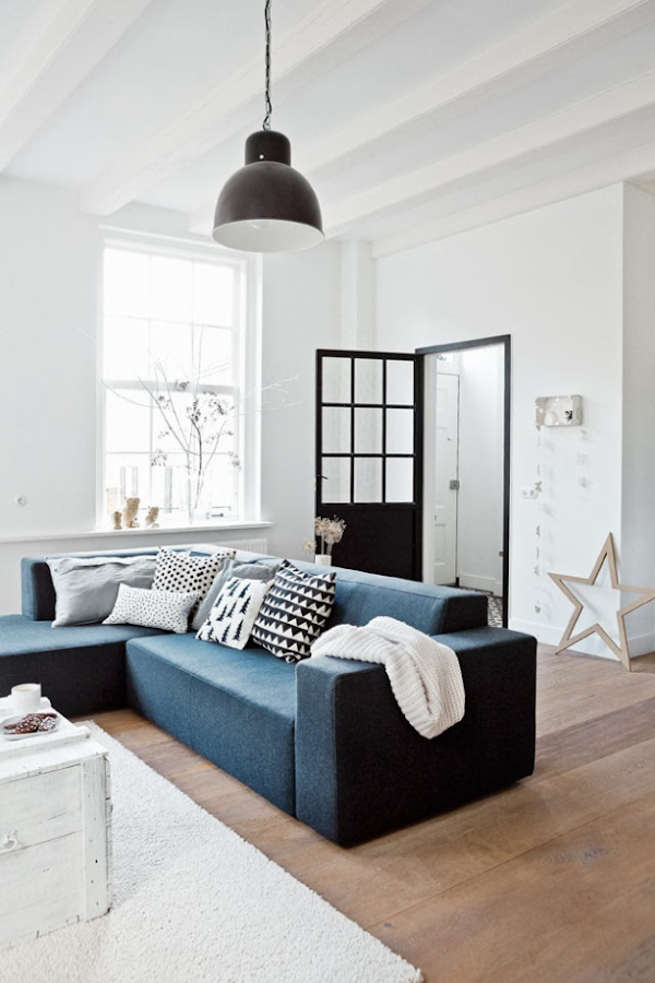 El salón me parece perfecto. Sencillo, con los muebles justos, de lineas rectas, con una caja de madera pintada como mesa de centro, una caja de frutas en la pared y los cojines.....que voy a decir de ellos, uno que ando en busca y captura y otro que está en mi wishlist como os enseñé aquí.