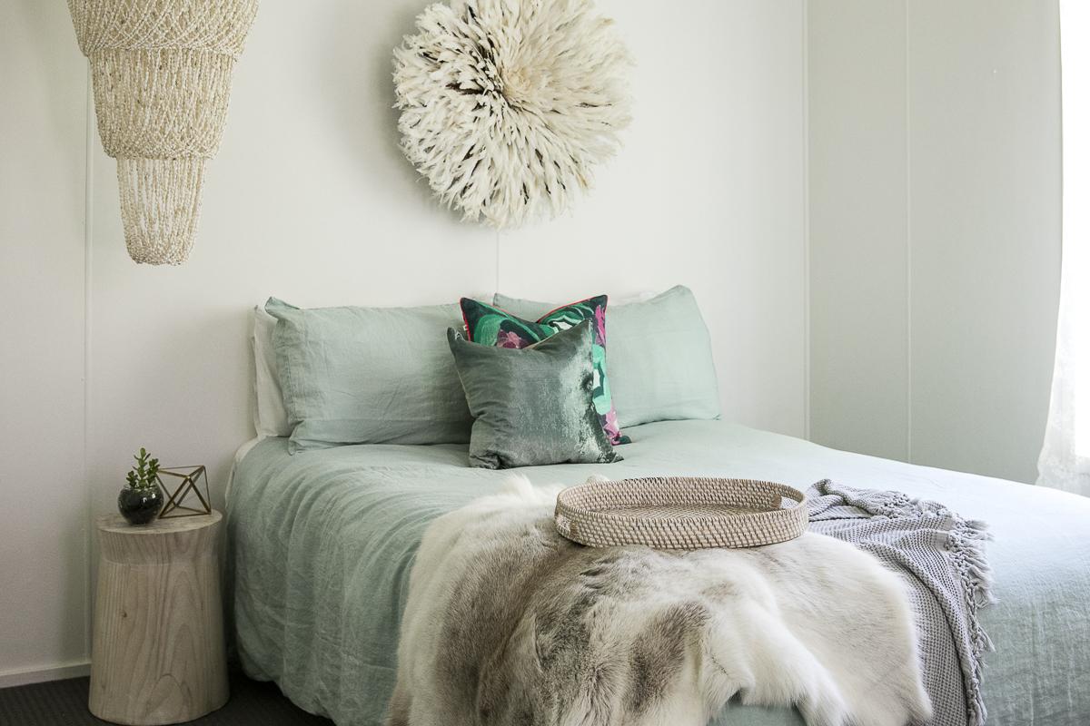Se trata de un proyecto del trío de interioristas Three Birds Renovations, de hecho, se trata de la casa de vacaciones de una de ellas, Bonnie Hindmarsh. Un bungalow de ensueño, cerca de la playa, y rodeada de césped y árboles (¡¡¡quieroooooo!!!).