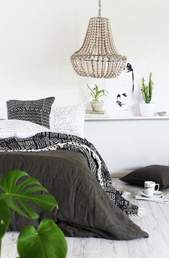 Pensamos que el estilo boho siempre tiene que ser en colores y no, otras veces se puede conseguir el mismo efecto mediante la combinación blanco y negro y además resultar alegre a la vez que relajado. Eso sí, alguna nota de color y elementos étnicos que no falten, además de la importancia de las texturas que van a jugar un papel muy importante para conseguir este estilo. Mirando el blog de Dr. Li ...