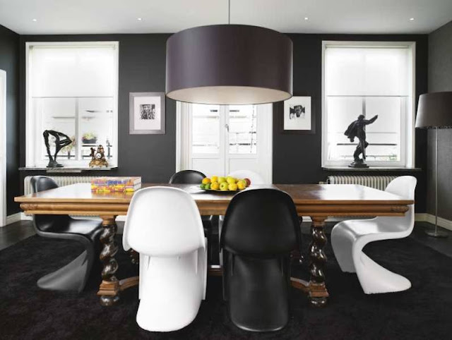La mezcla de blanco y negro en la decoración siempre es una apuesta segura. Forman un equilibrio perfecto; el blanco aporta luz y amplitud mientras que el negro le da un toque de elegancia y sobriedad. Yo lo acompañaría con alguna pincelada de color para darle mayor calidez como un suelo de madera, unos cojines de colores o unas patas de mesa de color rosa como podéis ver a continuación. ¿os gust ...