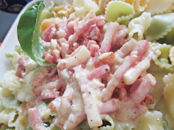 Ahh ...le añadí un par de hojitas de albahaca que perfuma ricamente y es ideal para cualquier plato de pasta!!