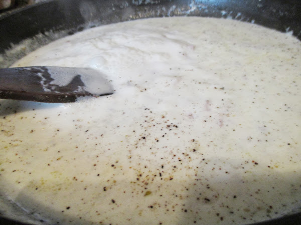 Cuando esté doradito, añadimos la nata y la salpimentamos.