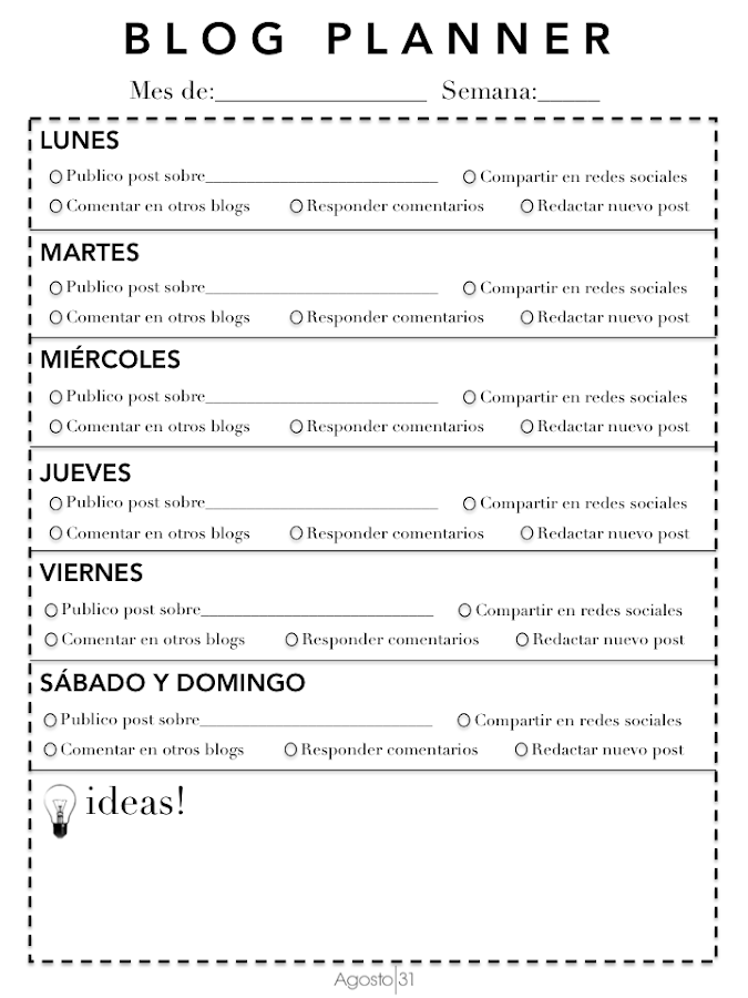 Si sois como yo, de las que llevan libretas y agendas varias en el bolso, podéis imprimir unas cuantas hojitas e incluirlas, para tener esta parte tan importante de nuestras vidas igual de bien organizada. Sé que hay métodos más modernetes: Remember the Milk, Evernote, etc, etc, pero por ejemplo, yo en el trabajo no puedo estar con el teléfono encima todo el rato, así que esta opción, la de toda la vida es la más idónea.