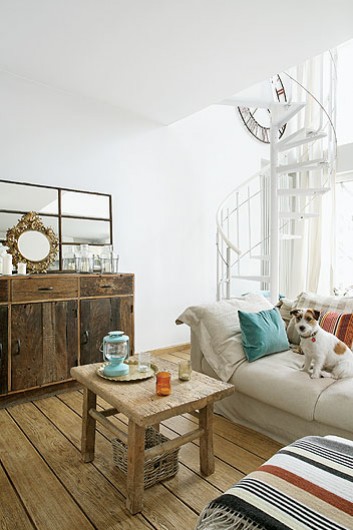 Este ático aire vintage es empleado de forma de apartamento francés y posee un estilo muy arraigado a lo escandinavo, ya que la combinación o alianza perfecta entre los muebles de madera y metal proporcionan un aspecto muy particular y grato a la vista