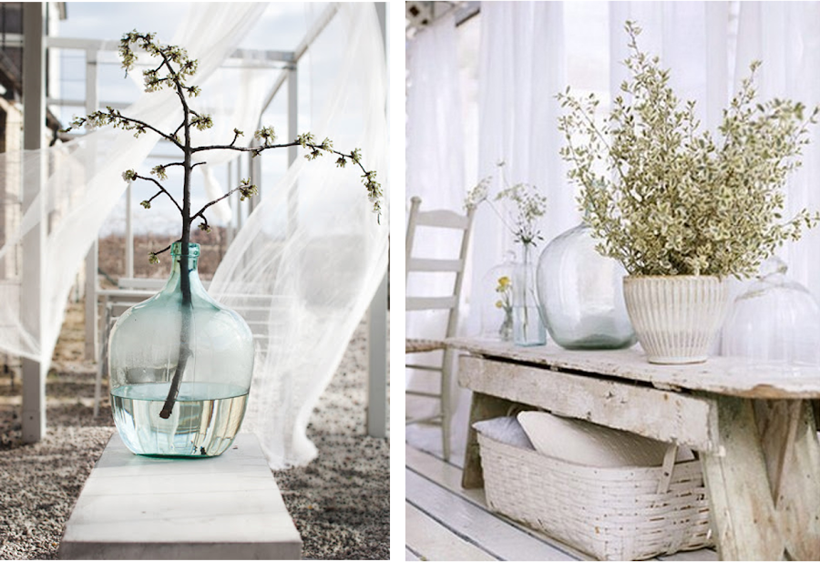 Las damajuanas o garrafas de vidrio, son un complemento decorativo fantástico para decorar cualquier rincón de nuestra casa. Con flores, agua, vacías, de diferentes tamaños o colores.....son un elemento ideal para una casa de campo, rustica, provenzal o mediterránea.