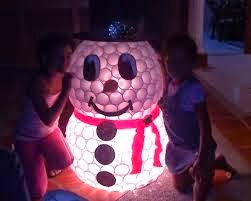 Y un muñeco de nieve con vasos de plástico, que lo podéis ver aquí con vídeo incluido de como hacerlo.