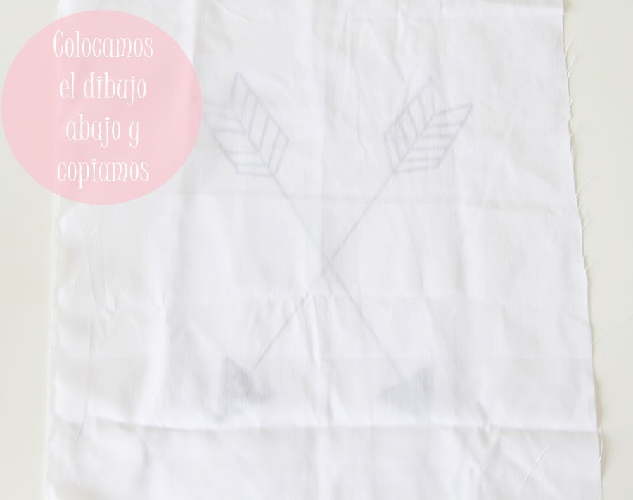 Primero de todo vamos a copiar el dibujo, así que colocamos nuestro dibujo bajo la tela y empezamos a copiar.