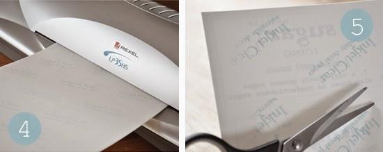 Separar el papel protector translúcido del papel mágico, y si la imagen pequeña, es el momento de recortarla con las tijeras.
