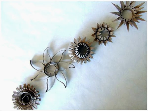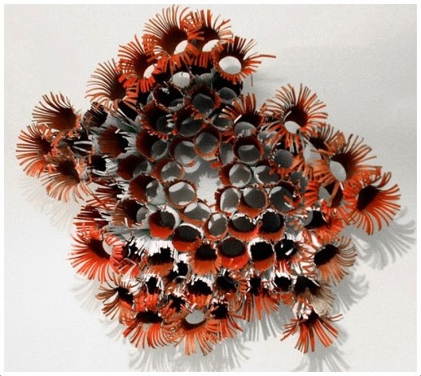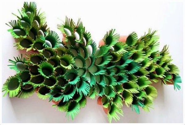 La verdad que en este caso el ingenio es sorprendente y las diferentes tonalidades de los colores, hacen que un material tan modesto luzca así de chulo. Parecen plumas.