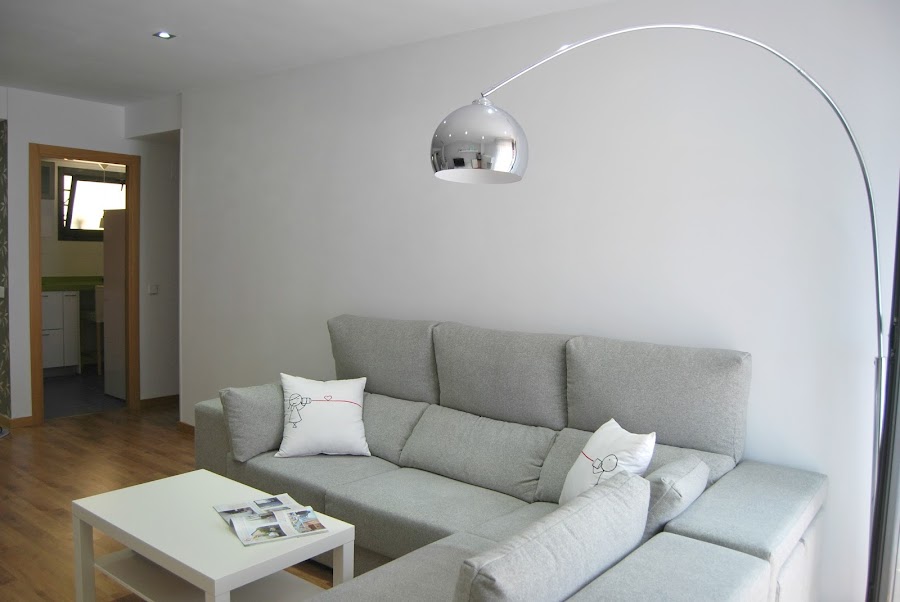 Una de las paredes las pintamos en un gris clarito. Queríamos darle un toque de color al salón pero sin que destacase en exceso.
