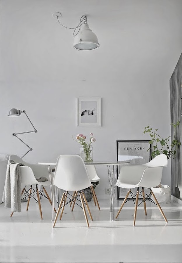 No me quejo tengo un suelo porcelánico gris claro muy sufrido y mate, que no tiene mantenimiento y que solo es puñetero de día cuando veo las patitas que Oker va dejando una vez bebe agua y hace un senderillo de la cocina al sofá, pero si por mi fuera... me pondría uno blanco, una tarima preciosa con aire nórdico que seguramente duplicaría la luz natural... ahora quiero uno de esos y como no puede ser... (no estoy tan loca de cambiar mi suelo por capricho) pues me pongo las botas con fotos y de paso si estáis buscando inspiración os echo una mano.