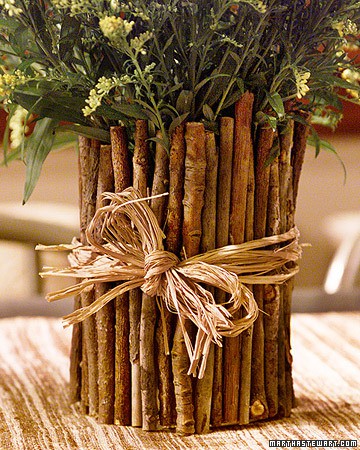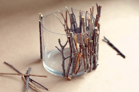 Es tan sencillo como ir pegando los palitos en el vaso sin dejar que se vea mucho el cristal. Después introducimos las velas o flores dentro y ya tenemos unos centritos de mesa ideales!