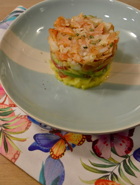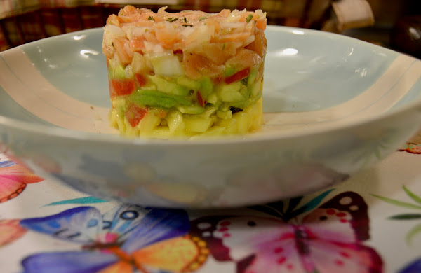 Finalmente, con la ayuda de un molde cilíndrico, formaremos tres capas diferenciadas con las mezclas... ¡Y a comer!