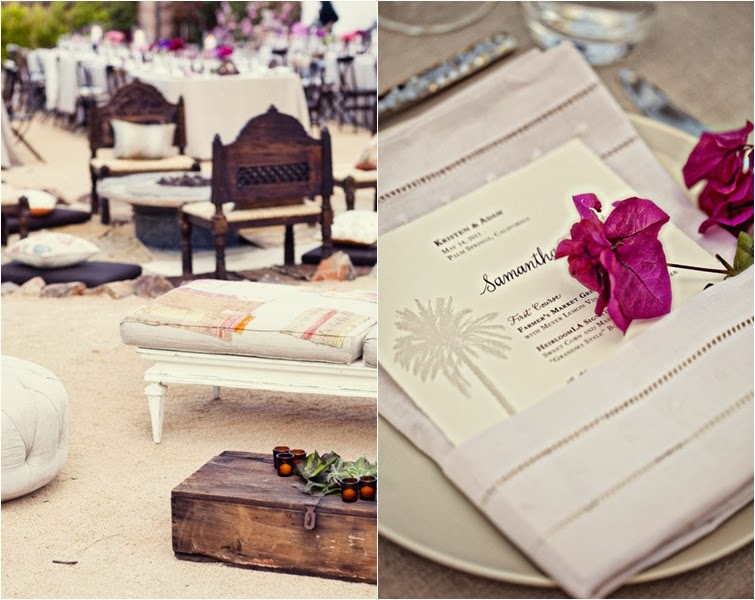 Hoy compartimos una preciosa boda que nos ha encantado tanto por la base blanca con toques lilas y fresas, como por los toque marroquíes que hay en los complementos (muy acordes por cierto con la arquitectura del lugar donde se celebró la boda). Farolillos, muebles vintage, vasos de té, detalles cuidados para los invitados y un ramo de novia que lo hemos puesto en portada, porque nos parece una monada. Una boda preciosa donde coger buenas ideas... Os gusta?