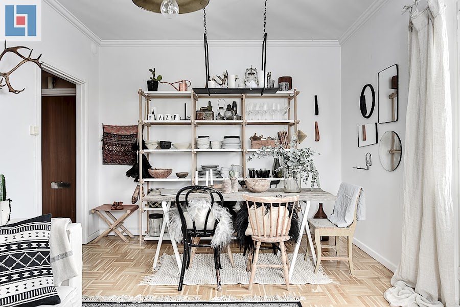 Cada vez más, el estilo bohemio-étnico nos está empezando a gustar más, eso si, a pequeñas dosis porque ningún estilo al cien por cien nos encanta, somos más de pequeñas pinceladas de cada uno para poder crear el nuestro propio pero la casa de hoy tiene algo que nos ha encantado. Aunque si bien es cierto que no es una casa grande, ya que tiene 46m2, si que puedo decir que no le falta detalle alguno.