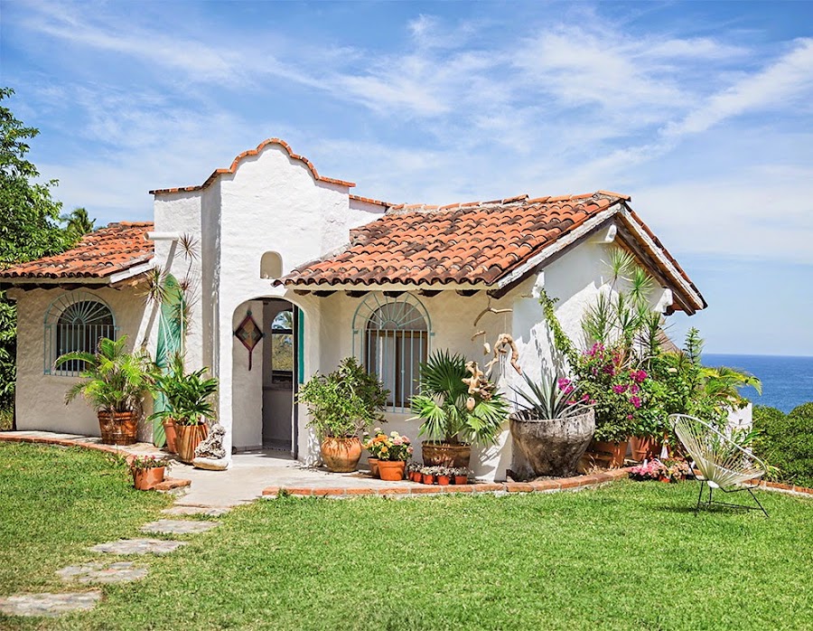 Aunque tengo que reconocer que me gustan las paredes encaladas tanto por dentro como por fuera y alguna pincelada de color como vamos a ver en casa mejicana. Puede presumir de un encanto bohemio pero tan limpio y sugerente que anuncia que su decoración está implicada con el minimalismo.