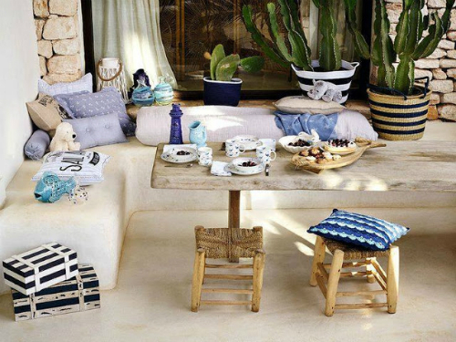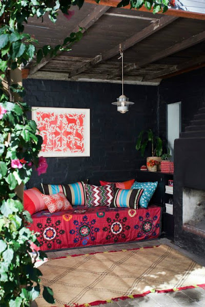 Hoy os presento una serie de exteriores, terrazas, patios, balcones pero con un toque boho como denominador común. Y ese toque bohemio, lo aportan en gran parte los textiles, algunos étnicos, otros de flores y otros de coloridos geométricos. Todo ello acompañado de plantas, faroles guirnaldas y un mobiliario para sentirte como dentro de casa pero respirando el aire fresco de la primavera y disfrut ...