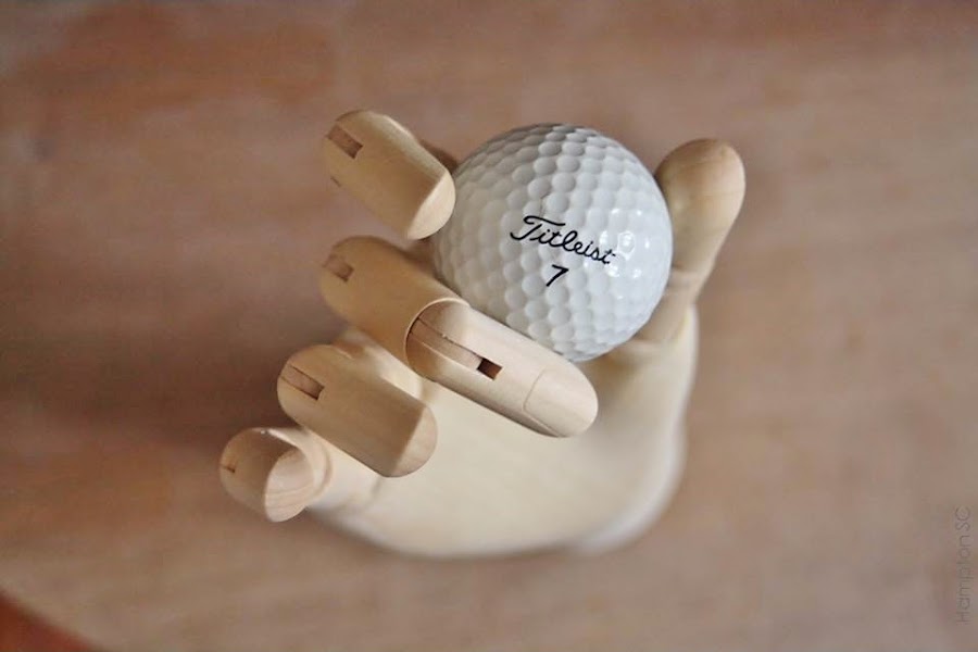 con palo de golf Lynx Master, pinchos y pelota.